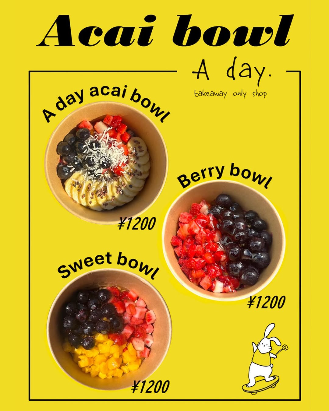 アサイー工房は月替わりフルーツのコンセプトが魅力的!季節ごとに変わるメニューで、何度訪れても新しい発見がありそうです。オープンが楽しみですね。