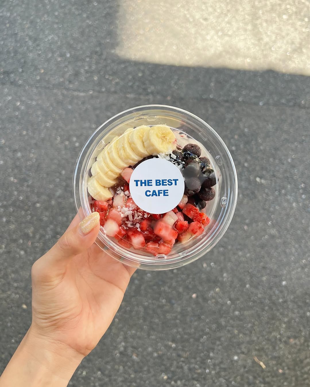 THEBESTCAFEのアサイーボウルは、濃厚な味わいと豊富なトッピングが魅力的。カカオニブやヌテラなど、自分好みにカスタマイズできるのが嬉しいポイントです!