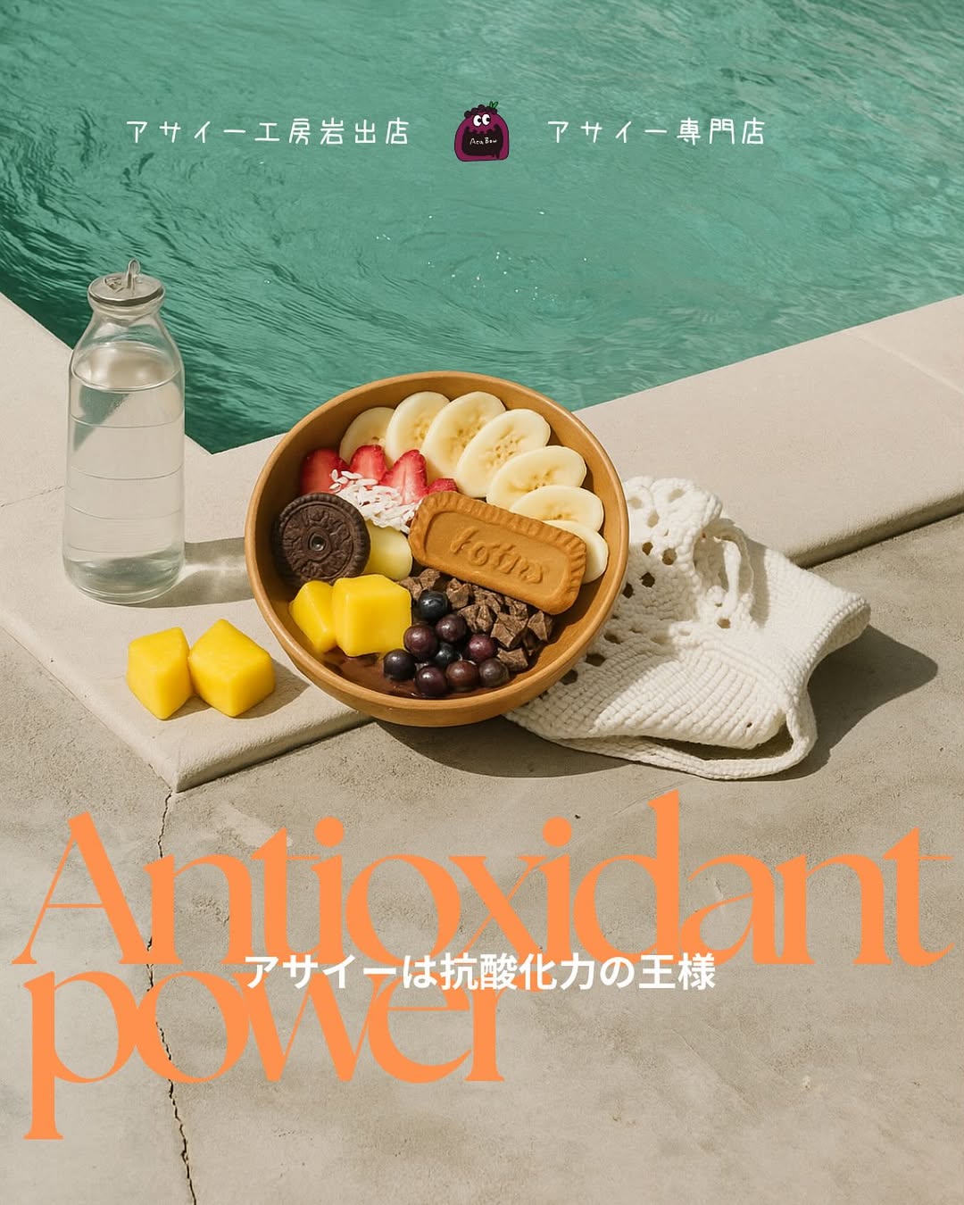 2025年6月にオープンしたアサイー専門店です。和歌山市北ノ新地の国道沿いにあり、たこテラスジャンボの隣という分かりやすい立地。FUJIMOTO SEIKA直送のフルーツを使用した本格的なアサイーボウルが楽しめます。