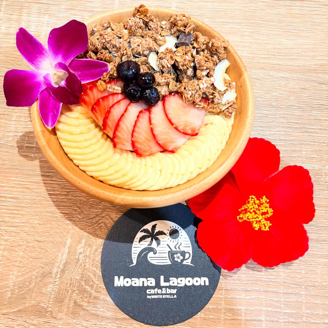 オーガニック素材にこだわり、Sサイズ1,500円、レギュラーサイズ1,950円でハワイアンテイストの濃厚なアサイーボウルを提供。100%コナコーヒーとのペアリングも絶品です。